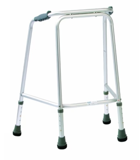 Mine differs from this in that it has wheels at the front, increasing mobility but also increasing the likelihood of the frame rolling rapidly away from you on a tiled bathroom floor, nearly resulting in twin heart attacks for the user and the accompanying HCA. Yes, speaking from slightly unnerved experience there!