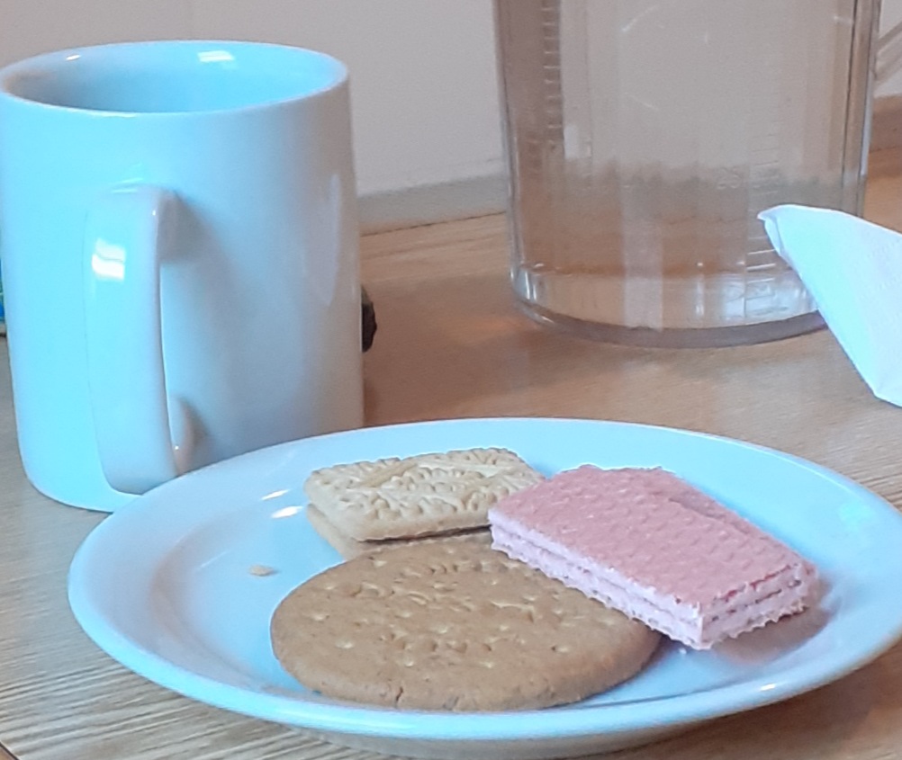 And then, after a physio session in which I walked the entire length of the bed, leaning heavily on my walking frame, before one of the physios had to shove a chair behind me to catch me as my legs gave way3, it was time for lunch.