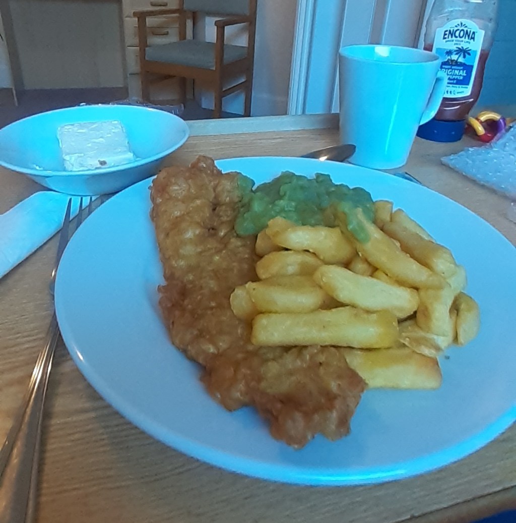 - Fish and chips: 8/10 – clearly not comparable to proper fish and chips from the chippie, but still very good indeed.