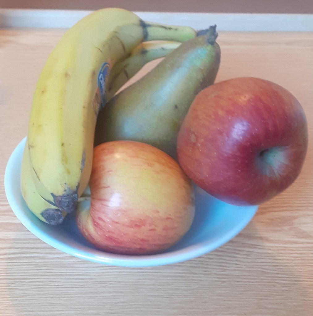 See: fruit! There were three apples but one was voted out of the bowl – i.e. there wasn’t room for it – so I ate it.