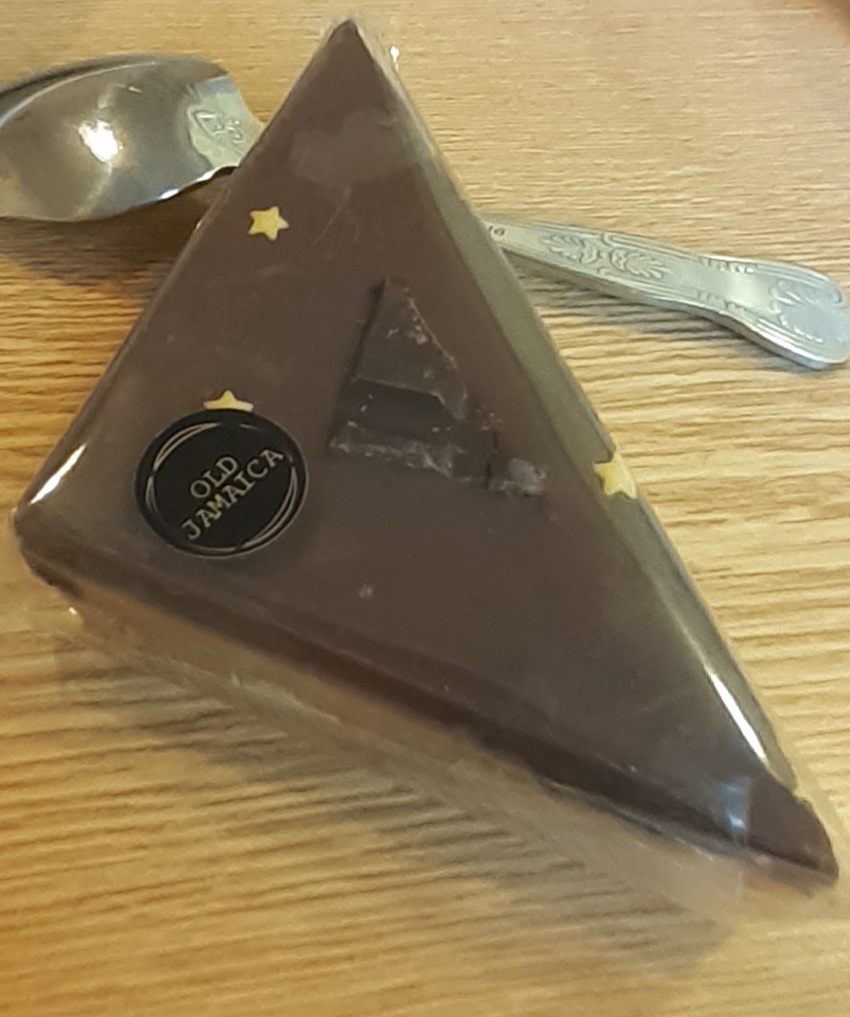 This one had a definite smell of rum when I unwrapped it, and the slab of dark chocolate covering it had whole raisins studded through it. The caramel centre layer was thick but still soft enough to ooze slightly, and the biscuit base had just enough saltiness that the whole thing wasn’t too overpoweringly sweet. (I mean, it WAS overpoweringly sweet, but that’s kind of the point. What I mean is that it wasn’t so sweet I couldn’t finish it and wish there was just one bite more.)