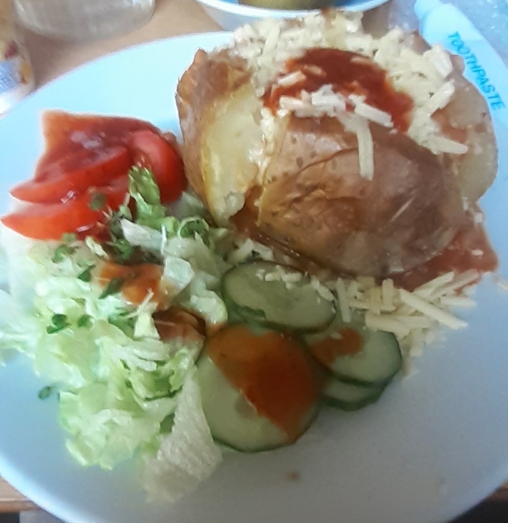 - Jacket potato: 8/10 – needed more cheese and butter, but still a very good JP.