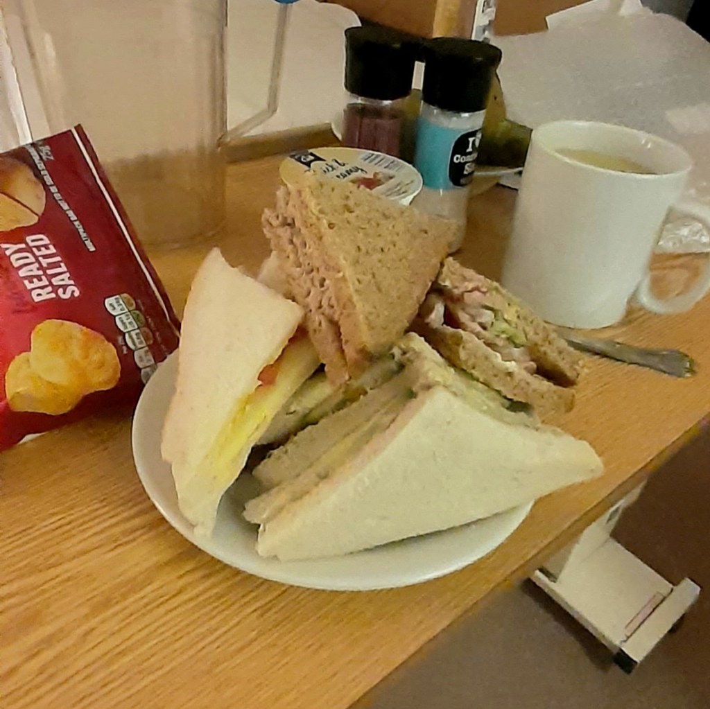 There was also, as always, soup: I couldn’t tell you what flavour it was except ‘very nice’ – super creamy, salty in a good way, thick but not too thick to drink from a mug. It’s probably a good thing I normally live some distance from the care home as otherwise, after I leave, they might find a stray Cat hanging around the kitchen door hoping some leftover soup might find its way in their3 direction.