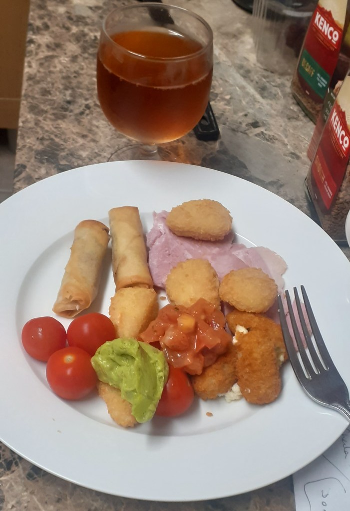 Dip selection: guacamole is OKish – a bit metallic and not really resembling avocado, but fine. Tomato salsa looks oddly milky, as if someone had spilled some of the sour cream into it; it tasted unpleasantly artificial and sharp, in a way that made everything else on the plate taste weird. The rest is going in the food recycling bin.