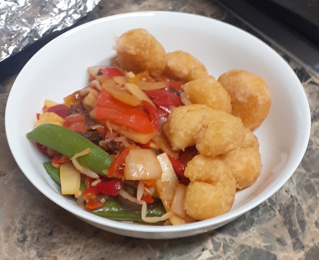 Unsurprisingly the bits of mushroom didn’t taste of much mixed in with everything else, and under the soy / sesame oil / sweet chilli / garlic sauce I poured over the veg, adding flavour but also unwanted and unneeded extra liquid to a pot of veg that was less stirfried and more lightly simmered in its own liquid. There was a definite crunch to the pieces of mushroom, though, which somehow survived a freezing and cooking process which reduced all the other veg in the mix to the same indistinguishable soggy texture. I will continue to be keen to try these mushrooms in a more appropriate Chinese / South Korean setting (culinarily rather than geographically, sadly).