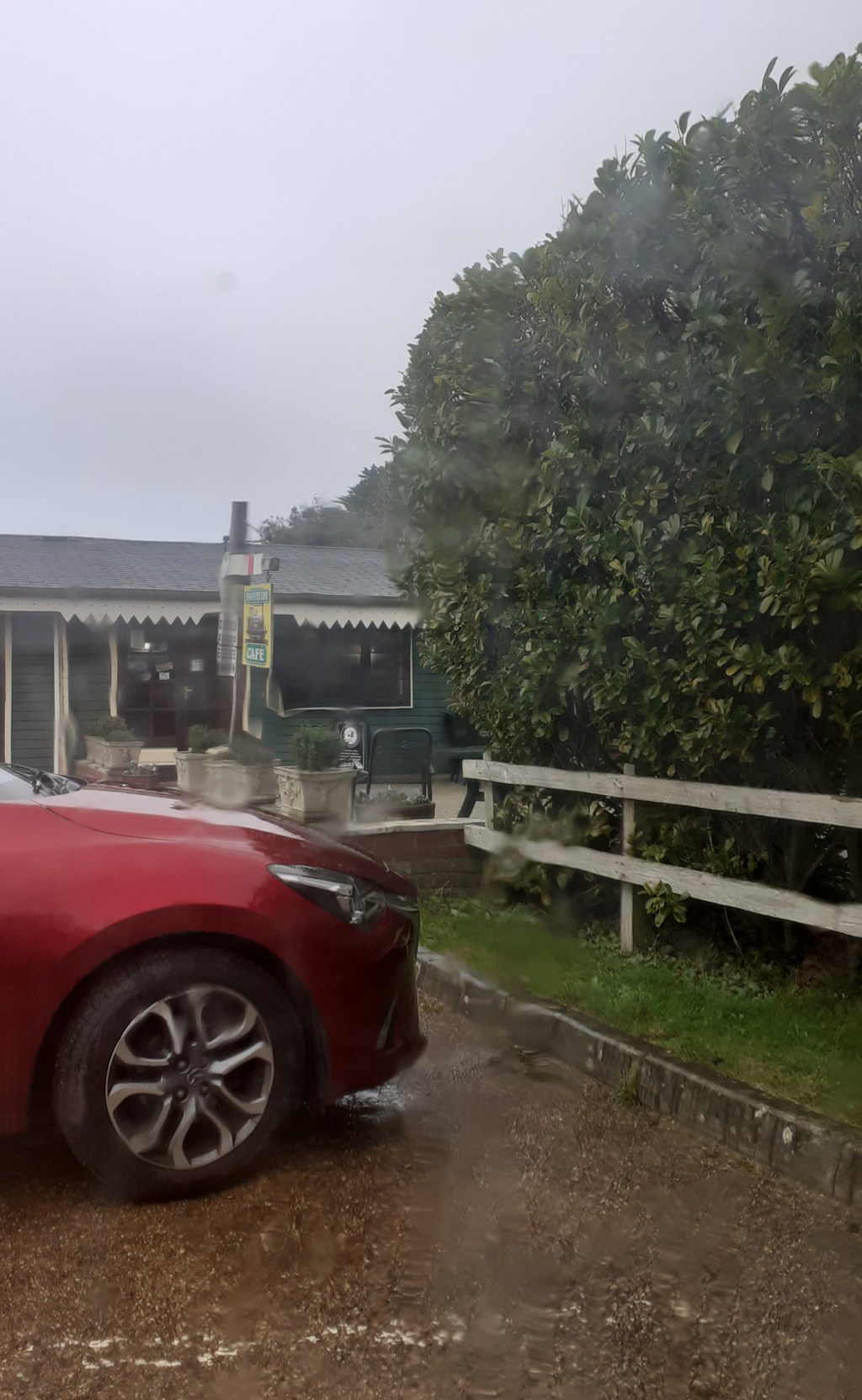 As I mentioned yesterday, today was my first trip out of the house since I came home from the cate home in mid December. It was fine: I made my way to the car, and from the car to the cafe, safely, had a cup of coffee (decent, in a pleasing improvement from last time I went there, when the coffee was barely drinkable) and a piece of millionaire’s shortbread while chatting to mum and a couple of her friends, then sat in the car and watched the rain while mum and one of her friends popped across the road to Tesco to see if they had any coffee ice cream in stock.