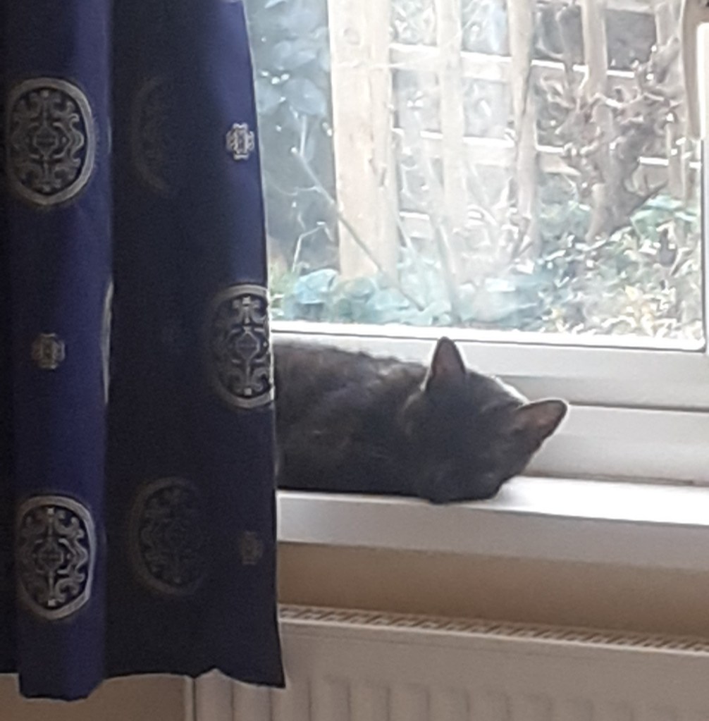 In other bad news, our last remaining cat, smoke tabby Star, is showing clear signs of illness, so I’m trying to work out how to get her to a vet. Everything is so much more complicated when you’re physically disabled, I’m learning. Please send any remaining kind thoughts to our dear little stripy cat: I’ve only just convinced her that I really am a nice friend and not a cat-eating monster, and I would hate to lose her now. (More seriously, we have lost two cats in four months already, and I can’t bear the thought of losing another one. ๐ข)