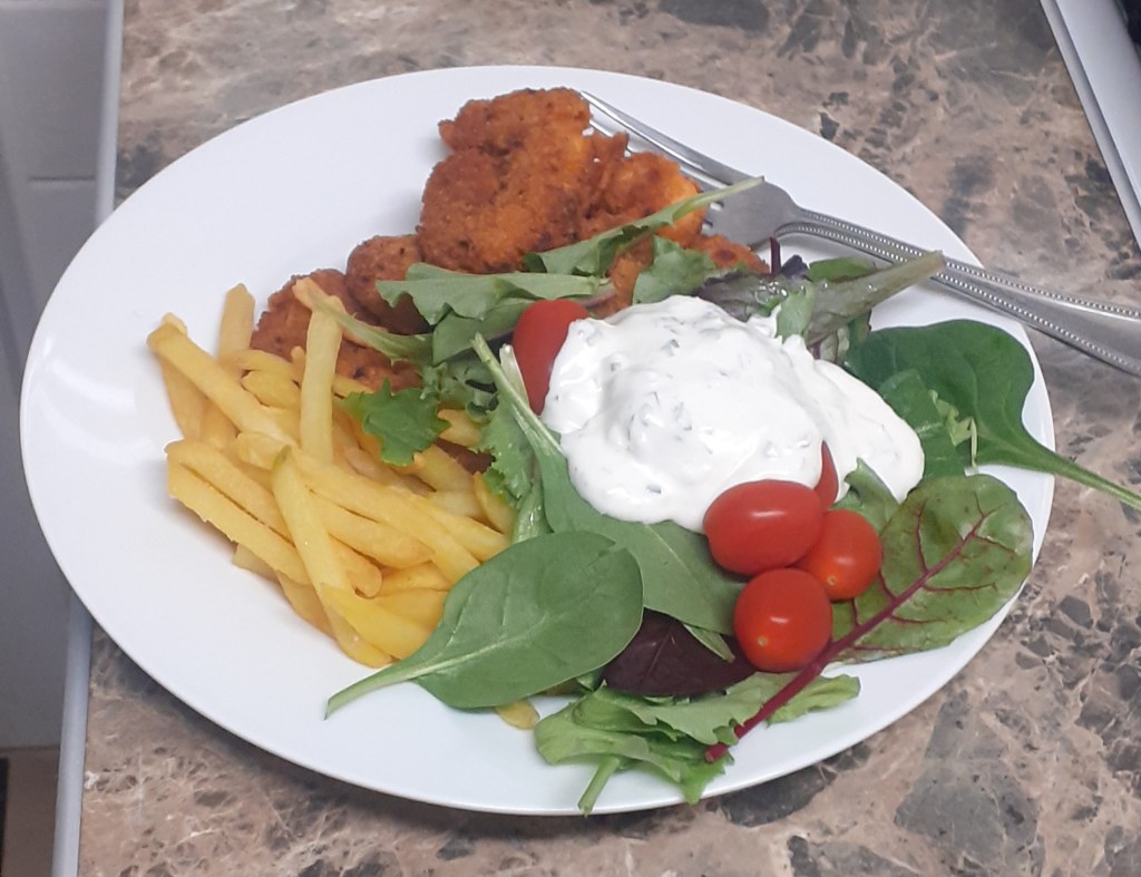 The chips (fries) from Iceland were fine, as they have been every time I have cooked them, the salad was fresh and probably tasted good, not that I could really taste it under the amount of sour cream I dumped on top.