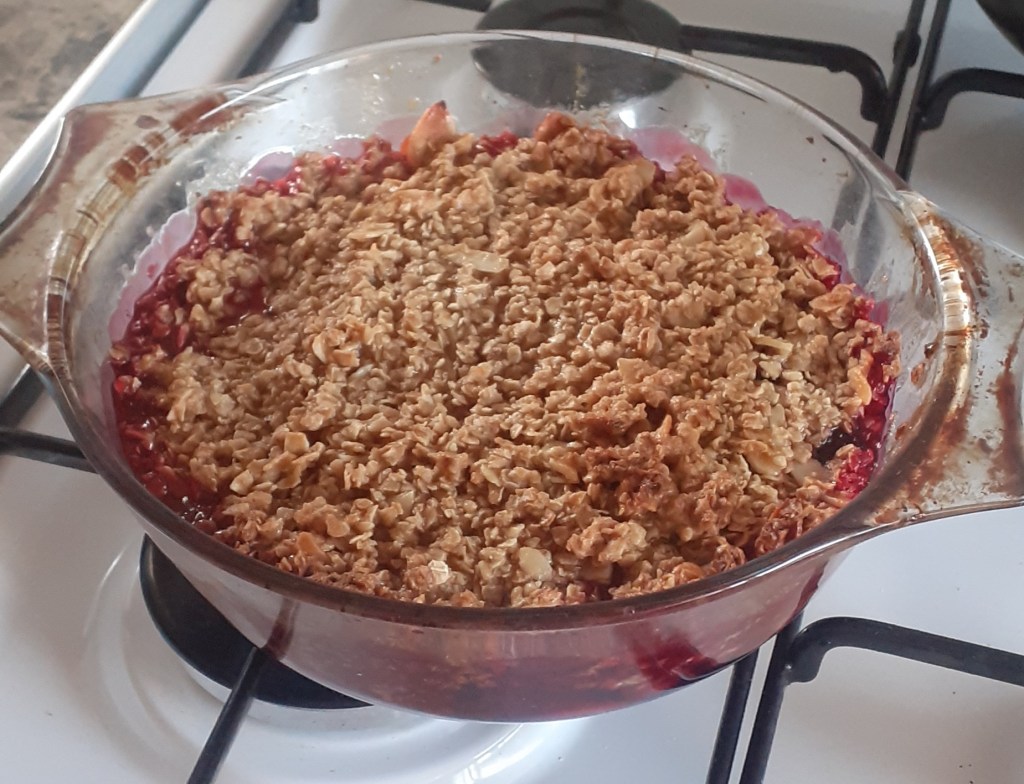 Dessert was my favourite “want a homemade pudding, but don’t want to make a pudding” pudding, flapjack and frozen berry pudding, and we only had that because mum looked so disappointed when I said I didn’t think I had the energy to make a hot pudding. When she finished her portion with a quiet, contented “yum”, it was worth the effort.