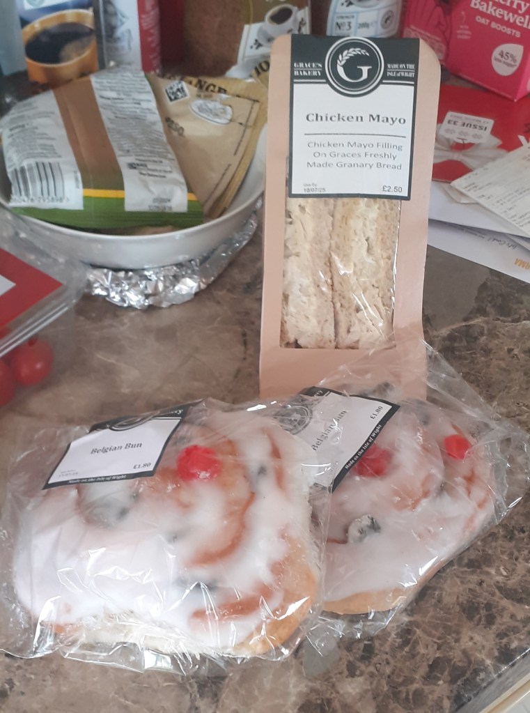 By this afternoon she was better enough to start pass-agg hints that “there will be food at some point, won’t there?” Still exhausted from yesterday, I pan-fried some ‘shwarma-style’ chicken from Tesco, which wasn’t particularly reminiscent of shwarma but was good, and served it with salad and bread. Done and done, thank goodness.