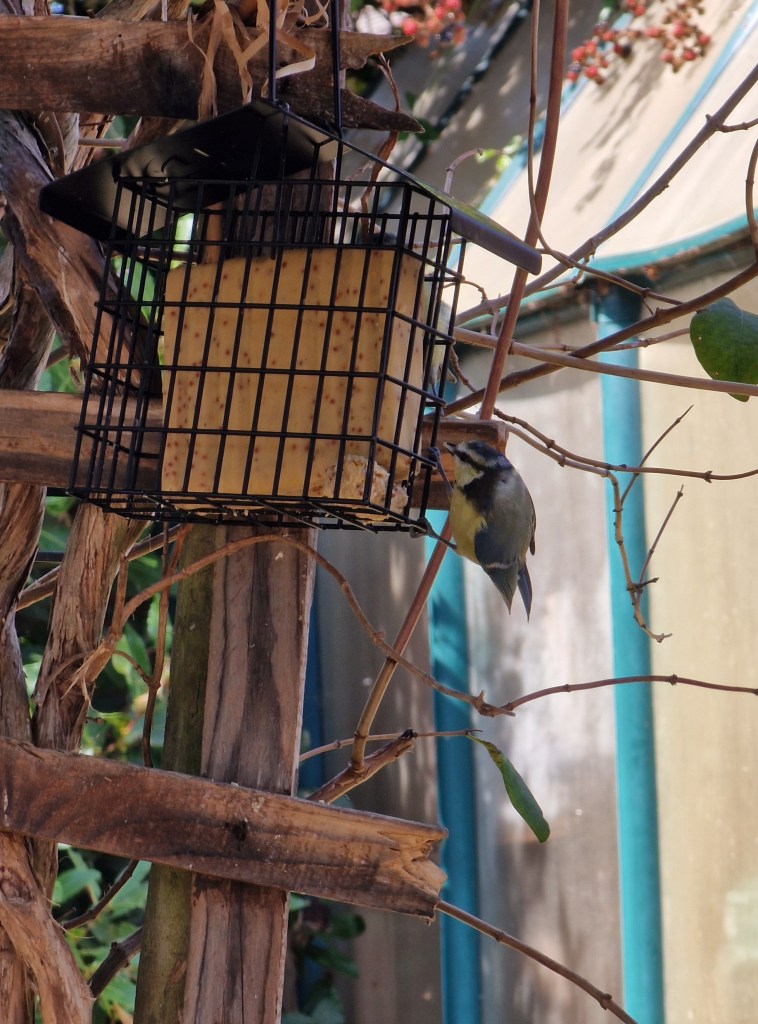 Sadly it flew off while I grabbed my phone to take a photo, but here’s a blue tit that came on one of the feeders while mum and I were sitting in the garden a while later: