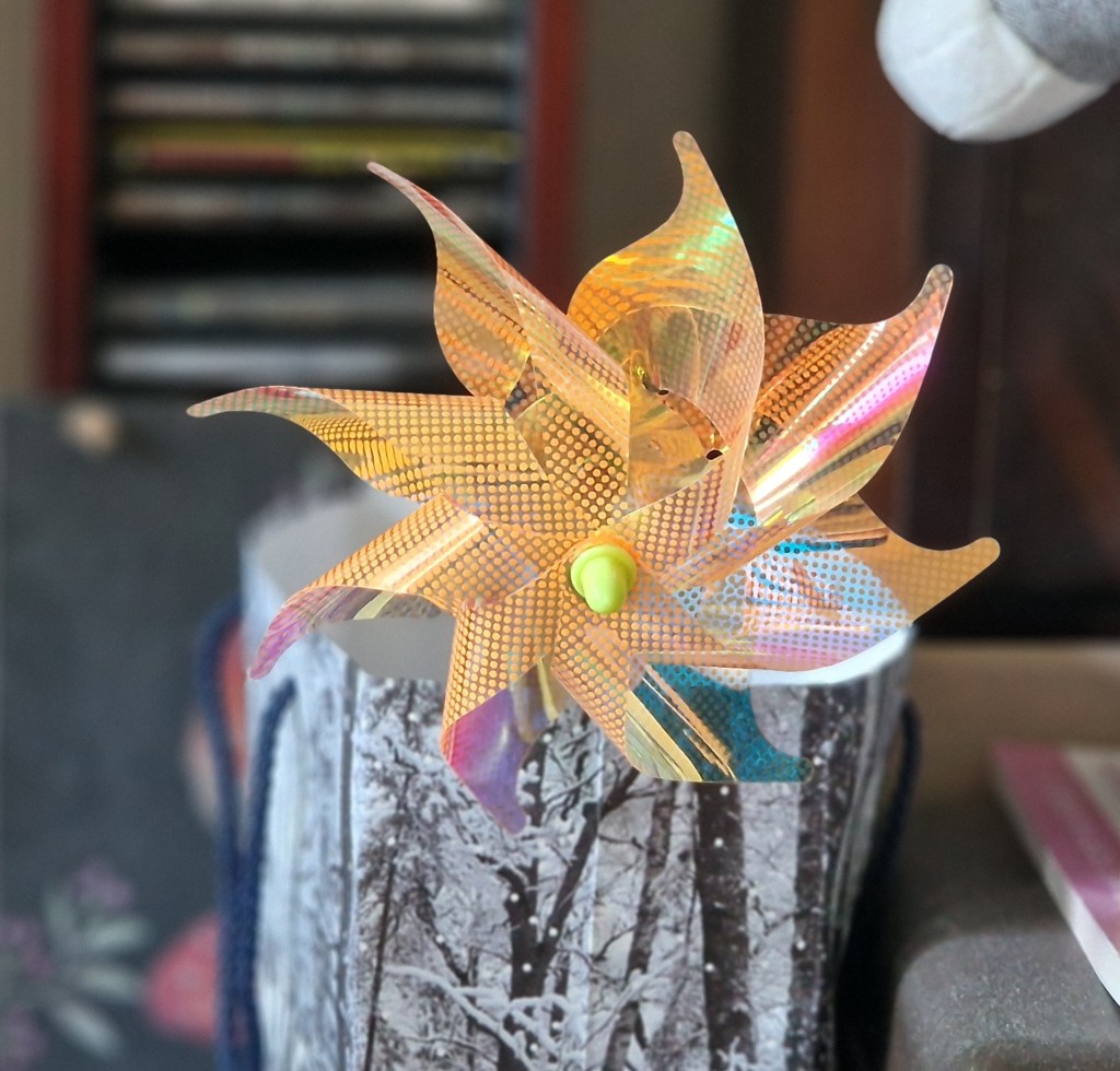 (I didn’t take a photo because you know what a supermarket pie looks like. Instead, here’s a photo of the toy windmill that mum saw and liked outside Tesco, so I bought it for her.)