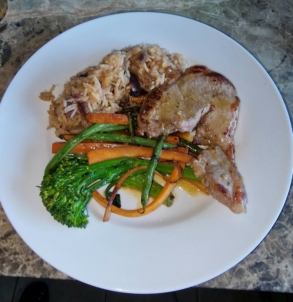 Dinner was a Simply Cook recipe for Japanese seared steak, but mum doesn’t eat beef so we had lamb instead. Mum and I both ate our shares, but I don’t think either of us were wildly enamoured.