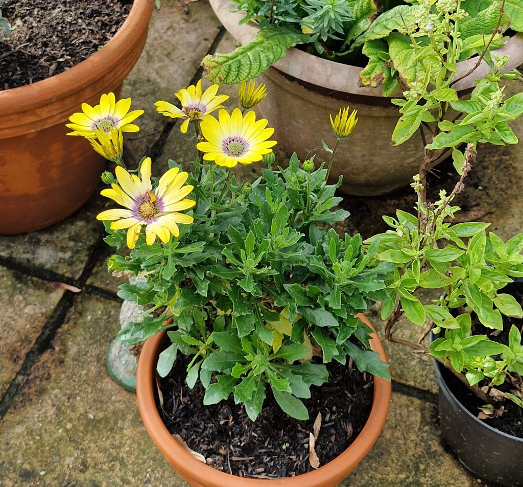 I also popped out into the garden with mum to refill our many bird feeders. On the way back in, mum stopped and did a count of the buds on our yellow marguerite and, as usual, it had more buds than when she counted yesterday. It’s not that she’s forgotten how to count – It’s that the plant keeps growing more buds. It’s not doing badly for something that cost me £1.