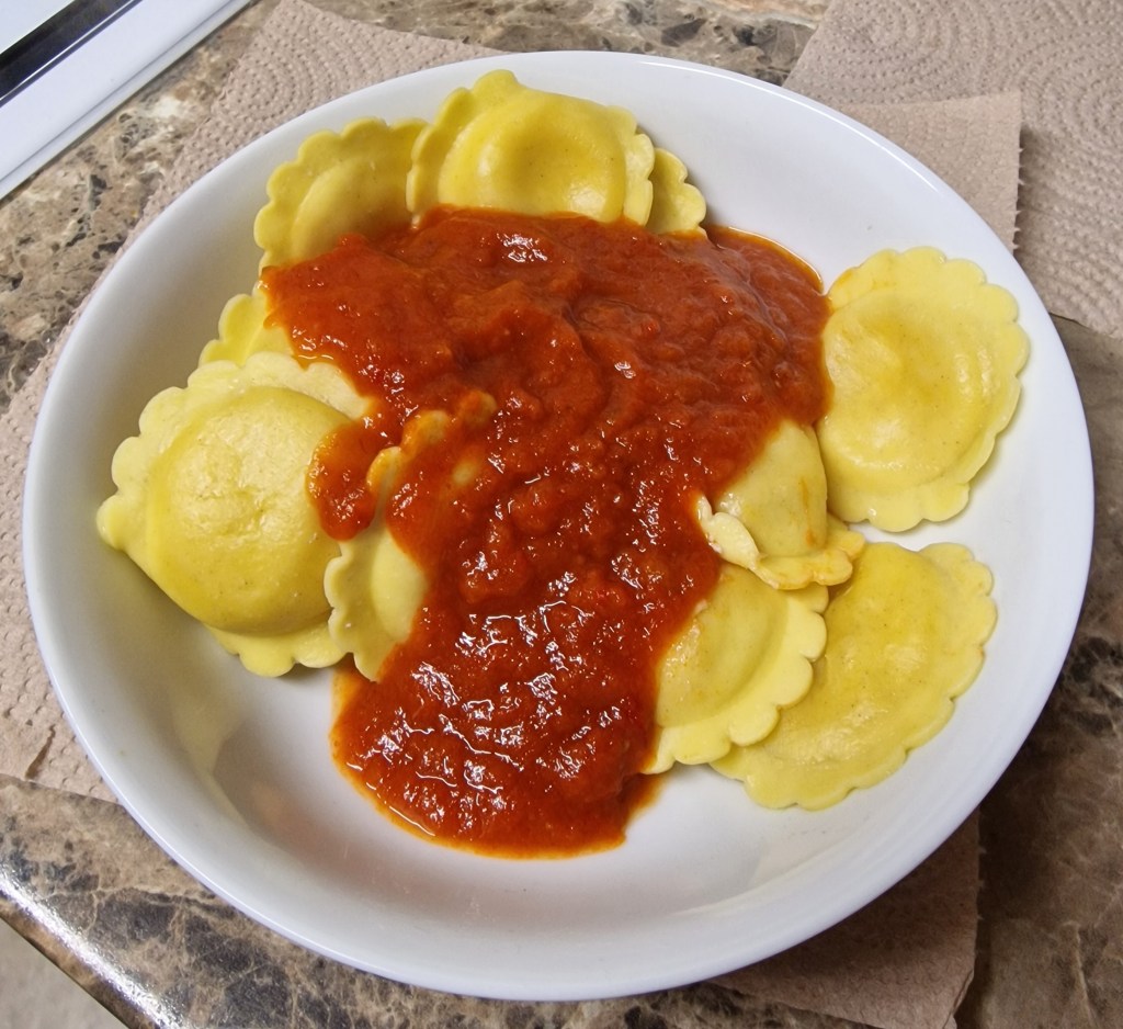 Four cheese ravioli with arrabiata sauce