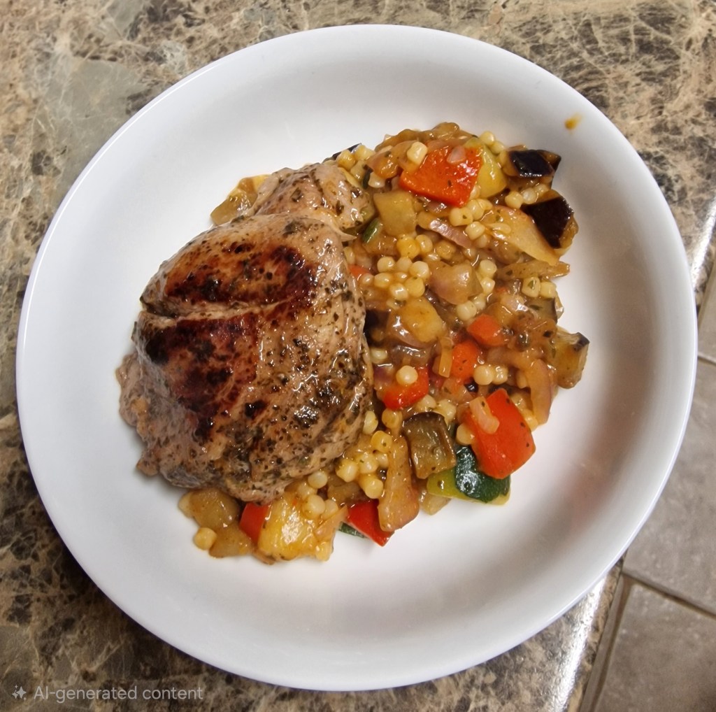 Minted lamb and Mediterranean vegetable giant couscous