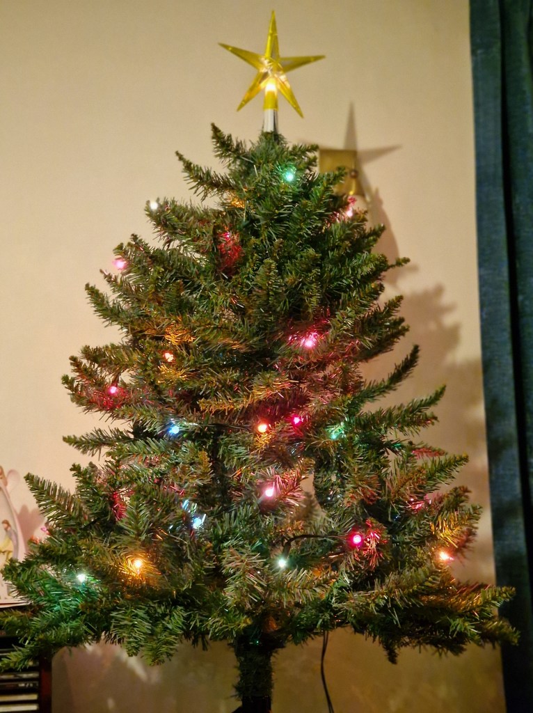 We both decided, at much the same moment, that the tree needed more lights, and we didn’t have any more. So I grabbed my phone and ordered more from Amazon, and for now the tree has a few lights, a star, and nothing more until the new lights arrive on Monday.