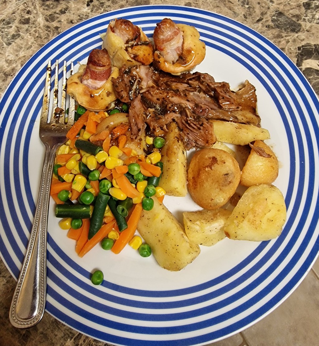 Dinner was my classic ready-made things on a baking tray. Mum came into the kitchen when I called that dinner was ready, looked at the offering and said “is it tasty?”, which for a moment brought to mind a hungry Gollum. I admitted that I didn’t know if mum would think it tasty as I never know from day to day what she likes. Mum was a little embarrassed, but ate her dinner without comment so I guess I won?