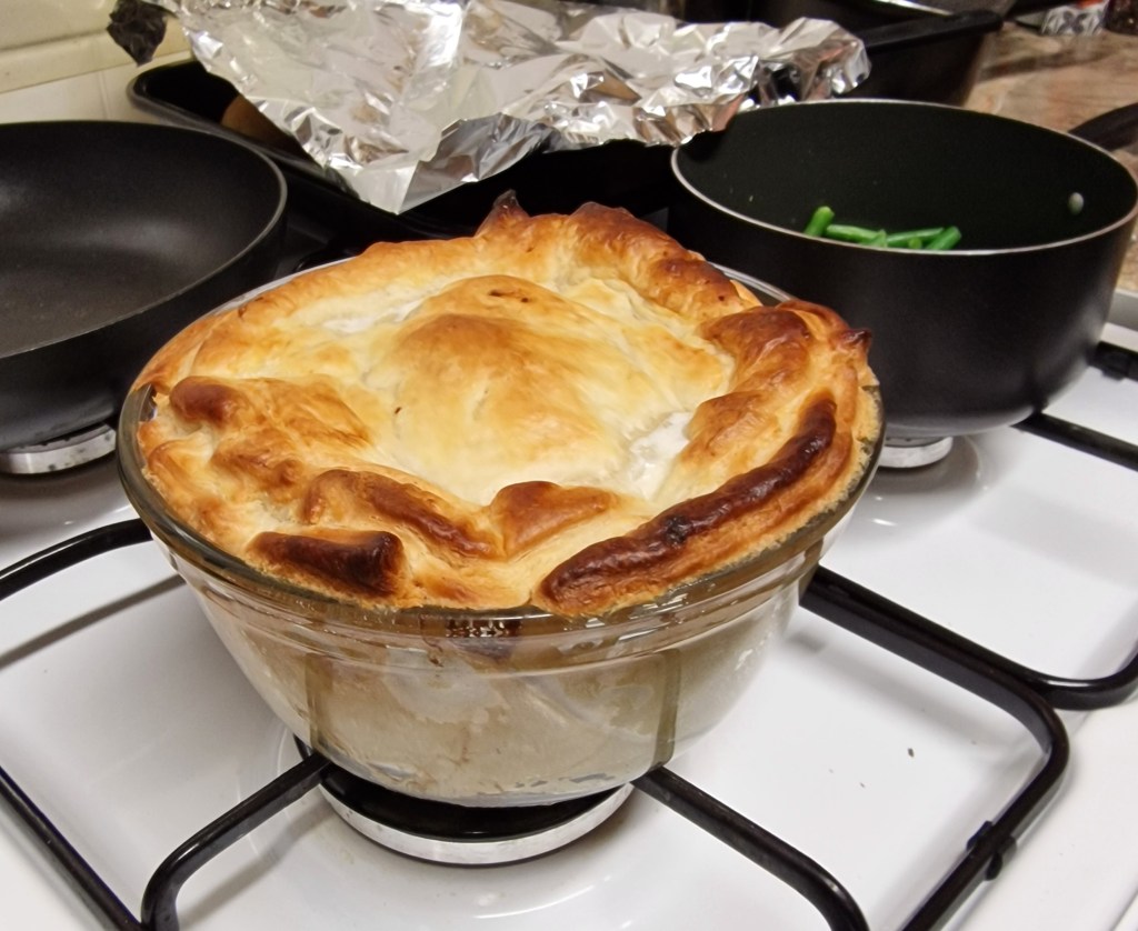 Despite my exhaustion I made my favourite bit of the Christmas feast, a chicken and ham pie, with a sauce of leftover gravy, cream, and some stuffing to thicken it. Mum declared it delicious, then added “all your food over the past few days has been lovely – well done”. Compliments from mum are, as you’re aware, incredibly rare, and I had to post just to share it with you.