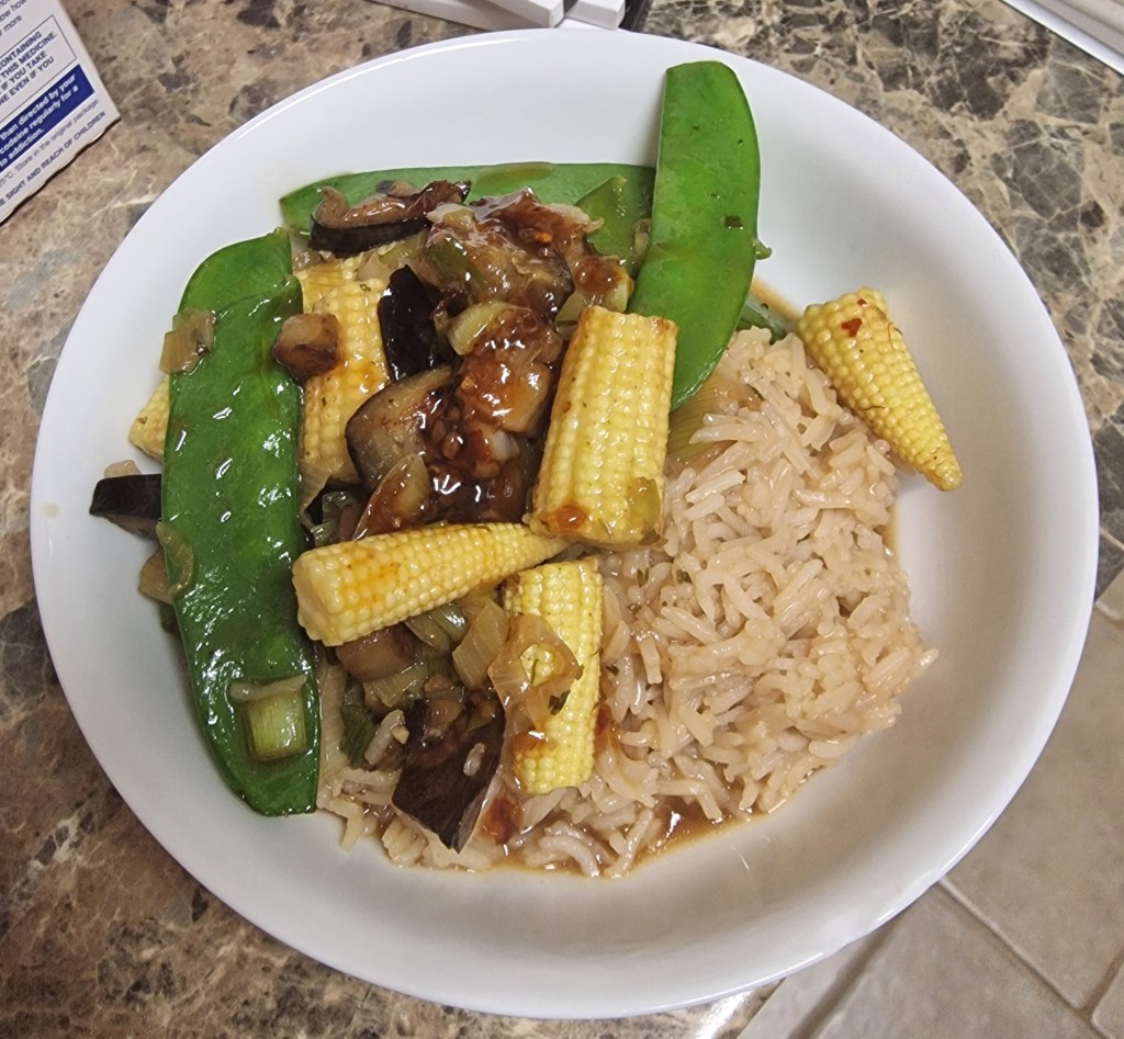 For dinner I did a Simply Cook recipe for Vietnamese pork and instead made it with aubergine, mangetout, and baby sweetcorns. Mum really enjoyed it, but I found it a bit sweet for my taste. I’m thinking of cancelling my Simply Cook membership as mum doesn’t like so many of their recipes and the boxes are piling up in the living room. If they ever decide to bottle the chilli garlic sauce that is part of many of their Asian recipe kits, though, I will happily buy a fridge-full. (For the avoidance of doubt, I only put a tiny amount in the sauce tonight and drizzled the rest of the little pot over my bowl of food.)