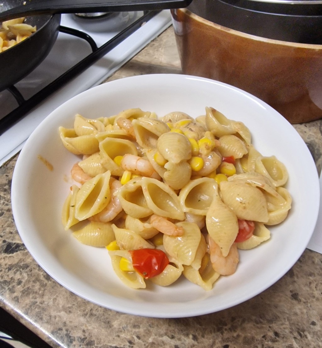 Dinner was a pasta dish, using a Simply Cook kit, and it was OK. Mum liked it more than I did, which I seem to remember was the case last time I made it, too. She was kind enough to let me have some of her “nice drink” – apple juice – after I dreamed about it last night and woke up craving a glass.