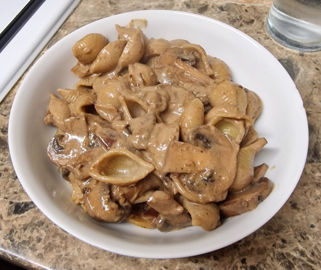 For dinner I made a Simply Cook recipe for ‘wild mushroom pasta’, although there’s not much wild about it except the wild way that a mountain of raw mushrooms cooks down to a neat two portions. It was nice, but so salty I think I’ll be downing water all through the night.