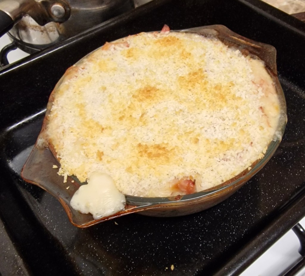 Dinner was an attempt to recreate a ready meal I saw on the Tesco website: random veg in a cheese and ham sauce. I thought it was a bit bland, but mum thoroughly enjoyed it. Bland seems to be the way to mum’s heart, food-wise at least. I’ll have to get the hot sauce out again.
