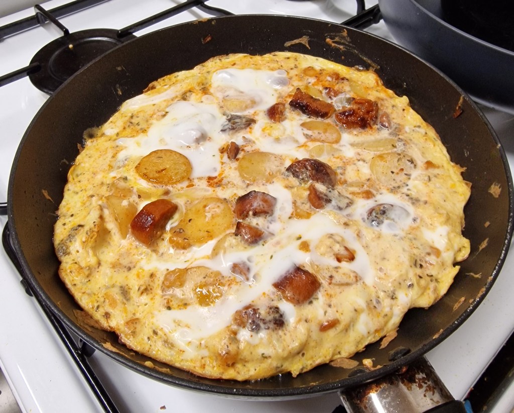 Dinner was Spanish omelette, one of my favourite “I like it, mum will eat it, that’ll do” meals. Now mum’s watching Britain’s Got Talent, I’m writing this on my phone and flicking over to the text commentary of the curling at the end of each sentence.