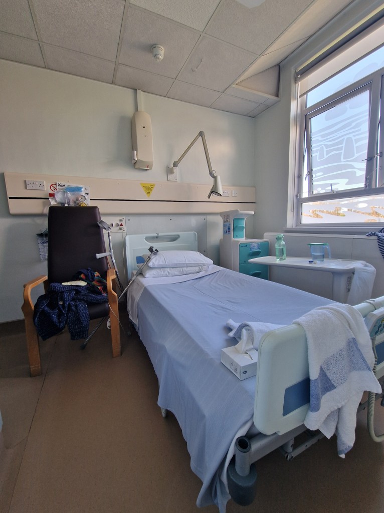I was shuffled into a wheelchair and taken upstairs to a small room which wouldn’t have put a small B&B to shame: