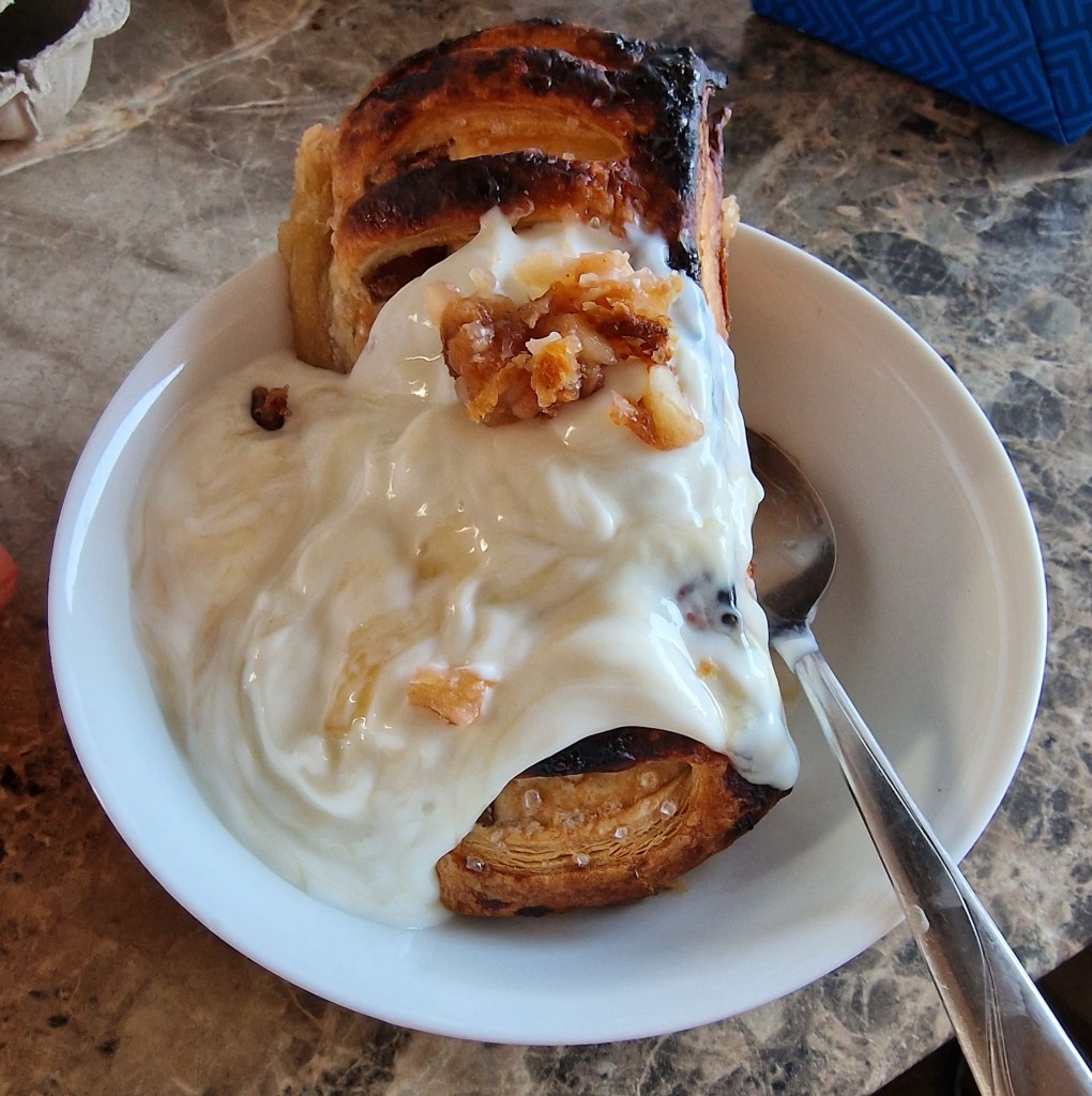 Thankfully, we had a grocery delivery today which included a number of easy dinner options. It also included a box of two apple strudels which, tragically (not) wouldn’t fit in the freezer so I had to cook them tonight. Shame.
