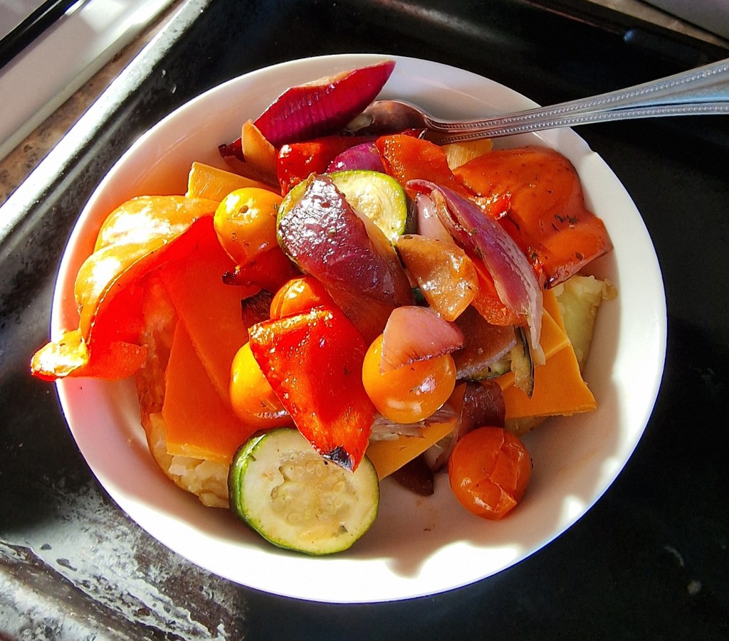 As mum is still feeling lousy, I made her favourite dinner of “those round things”2 with “ooh, I like the red bits!”. It took her a while to eat it all, but she did manage to finish a full portion of a proper meal. Now she’s onto coffee ice cream, and I’m going to go for a blueberry muffin.