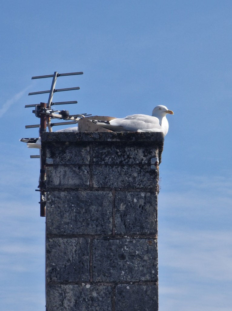 But even by herring gull standards they have seemed unusually audible recently, and a rare trip into the upper part of the garden this morning showed me why: they’re nesting on our chimney.