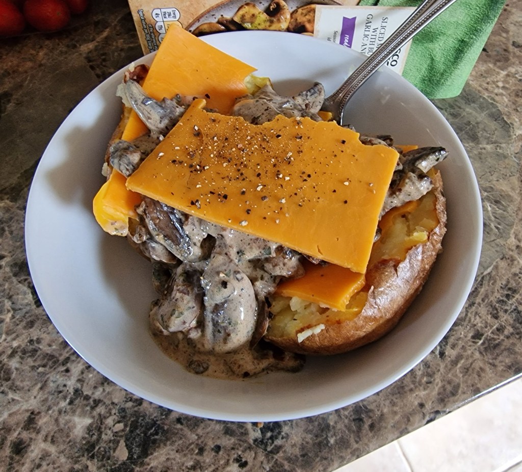 For dinner I did the jacket potatoes that mum has been asking for over the past few days. I did some creamy garlic mushrooms with mine: mum was on a “I don’t really like mushrooms” day so she just had cheese on hers.
