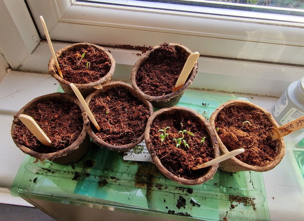 The only pots without green sprouts atm are the ones with the pepper and aubergine seeds in, both of which apparently known to be the ‘slow starters’ of the plant world.